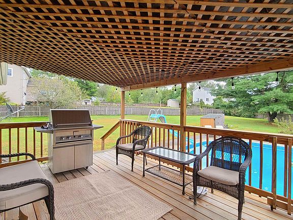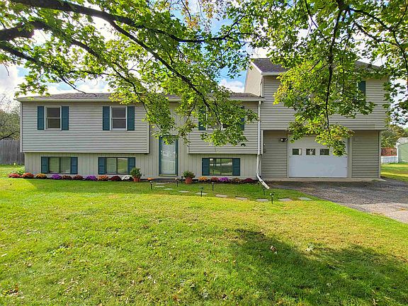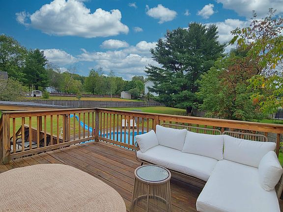 This home has over 2300 sq ft. of finished space, sitting on a half acre lot with fenced back yard and easy care, in-ground pool. Summers are getting warmer and nothing like sitting on either the open deck or covered deck after a dip in the pool. In winter months, the spacious Living Room with skylights and gas fireplace is the perfect place to enjoy the warmth of sunlight and fire. Large dining room and Island with seating for morning coffee, baking, buffet serving center, or just enjoying the view through the glass doors. This level has 2 bedrooms, an office/study and a full bath. The Lower level has a large bedroom, full bath, laundry room and large multi-purpose room (presently used as family room). Garage has side door entrance close to driveway, storage on both sides and back door to the yard. Seller is even ready to show you how easy it is to close the pool for the winter and what to do in the Spring. What more could you want or need?