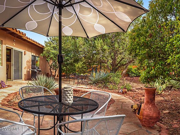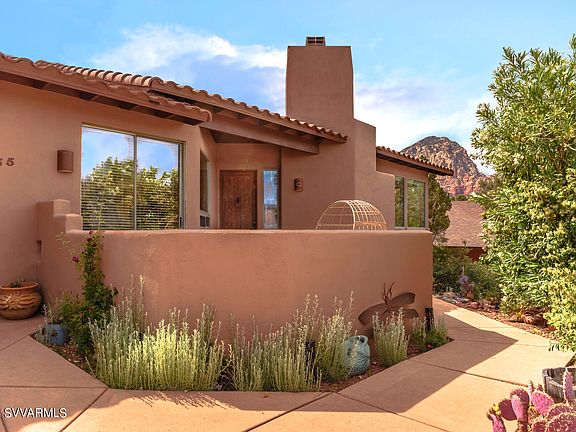Charming Santa Fe style home in West Sedona with red rock views of Coffee Pot and Wilson Mountain. 2028 SF, 3 bedrooms, 2 baths, split floor plan, located in a quiet cul-de-sac location on .24 acres. Minutes to grocery stores, theater, restaurants, dog park and hiking. Move in ready.