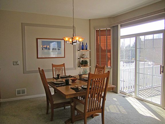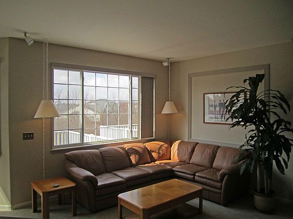 Immaculate 2 bedroom, loft, 3.5 bath, 2 car garage townhome, located on the perfect lot. Filled with amenities including hardwood floors, brushed nickel fixtures, bay window in breakfast area adds extra living space, two story living room with built-in home theater, eat-in kitchen with corian countertops/upgraded oak cabinets/custom stone wall, spacious loft w/brick wall, master suite w/ luxury bath, gorgeous finished English basement with wet bar/ built-in window seat/full bathroom, oversized deck to enjoy the secluded wetlands. Walking distance to shopping and Lifetime Fitness.