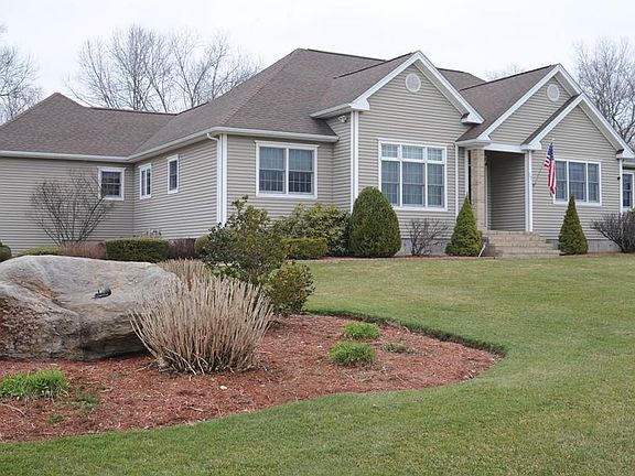 Gorgeous Custom built contemporary ranch .This home has elegance starting with the professionally landscaped lot . Stone walkway to front door .Enter into a beautiful fireplace living room with gleaming hardwood floors .Open floor plan to a beautiful granite kitchen with tile flooring and stainless steel appliances . Entertain guest in the open kitchen ,dining room and living room. Gorgeous master bedroom with a Jacuzzi tub. Two other bedrooms and another full bathroom. If that isn't enough for you proceed downstairs to an open floor plan finished basement perfect for an in-law set up equipped with another bath, living-room with wood stove,kitchen area and room for two more bedrooms and a walkout for a private entrance .2 Car garage,fenced in back yard with a deck an above ground pool. This lovely home is situated on a double lot of 2 acres of land on a Cul de sac . A must See ! Close to shopping and highway access
