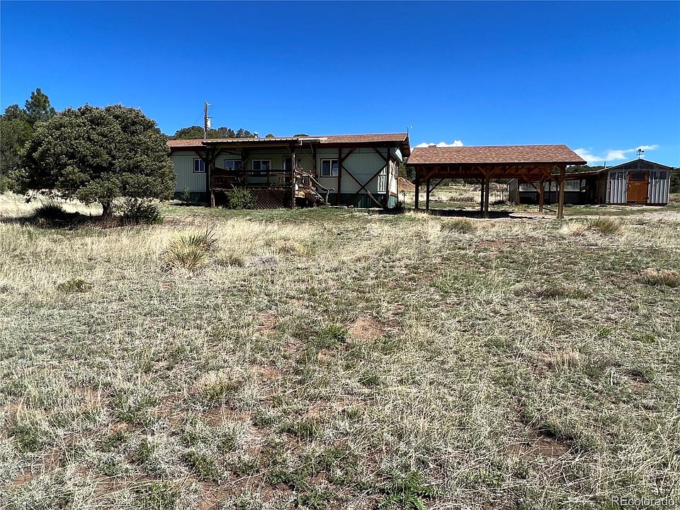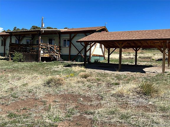 Southern Colorado living! Located on 2.79 acres is a 2 bedroom, 2 bath single wide mobile home with community water in Navajo Ranch. Home has newer vinyl windows, wood stove, tile floors, and is covered by a newer protective structure with composite roof. Lovely rustic front porch with mountain views in a quiet setting. Fenced pet area in backyard along with 2 carports and a workshop/shed. Home needs a little TLC and minor repairs but would make a wonderful weekend retreat, rental property, or a great starter home.