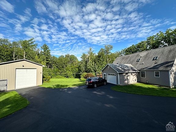 New Price, Motivated sellers relocating. A Private country road, brings you down to your own piece of paradise. Entering the newly paved drive, you'll come to a cape which sits back from the road where Stunning views of the Berkshire Mountains welcome you home. Bright sunny rooms, open airy kitchen, dining and family room with a pellet stove. First floor main bedroom ensuite. Built in 2011, the extra large bedrooms are a bonus, 2.5 baths. Fully finished, heated basement, opens to a huge 30' x 25' workshop. Beautiful private Trex deck out back with a retractable awning. The attached 1 car garage has an epoxy floor that shines. Another 24x48 garage with an oversized 14'door for a large truck, boat or RV with a 75 amp charger an RV dump station in place. Lots of attention to detail, security system, on demand water heater, softener, air purifier, skylights. Minutes from Jiminy Peak, TSP, Hudson, Albany. 2.5 hours NYC This is a MUST SEE!