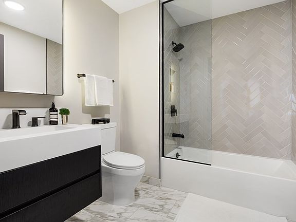 IMMEDIATE OCCUPANCY. The Parker is a luxury condominium building in the Theater District, featuring 168 articulately designed studios, one bedroom, and two-bedroom penthouse residences. Centrally located, it offers a 24-hour concierge with speakeasy-inspired indoor and outdoor amenities by Zarifi Design. Residences feature a clean design with unexpected details such as sculptural floor-to-ceiling windows and wide-plank white oak flooring. The kitchen boasts a custom Italian marble backsplash with brass finishes and a rich color palette combining materials and textures to create a sleek, dynamic aesthetic. Amenities include a cocktail lounge, billiards room, private screening room, co-working space and are rounded out by a state-of-the-art fitness center and a roof deck perched atop Boston Common with spectacular views of the Back Bay, sunsets over the Charles River, and Financial District.