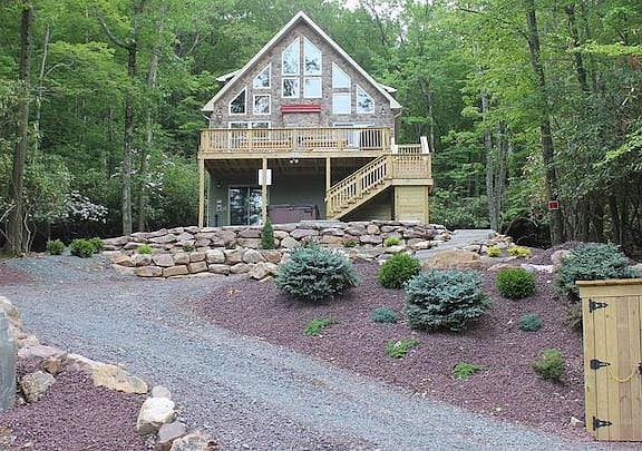 Discover the perfect year-round vacation destination in Lake Harmony, nestled in the picturesque Poconos. This charming chalet not only promises relaxation but also presents a lucrative investment opportunity with impressive cash flow from established short-term rentals. This home is being sold fully furnished with bookings secured into 2025! Set against serene woods with scenic lake views, this 6-bedroom home is designed for comfort and entertainment. Two bedrooms on each floor, plus a loft, offer ample space for guests. The lower level features a game room with a pool table and video arcade, while outside, a hot tub perfect for relaxation. The inviting living room boasts sliding glass doors to a balcony and a stunning interior/exterior fireplace, perfect for cozy gatherings. Each spacious bedroom includes generous closets, and every floor features a full bath for convenience.The kitchen is perfect for entertaining and features a peninsula with pendant lighting, tons of cabinetry ,and granite countertops. Located within walking distance to bars and restaurants, and just minutes from ski slopes, resorts, and shopping, this chalet combines tranquility with easy access to recreation and amenities. A massive driveway accommodates up to 13 vehicles, ideal for family gatherings or rental guests. Whether you seek a profitable investment or a personal retreat, this turn-key property offers both, ensuring enjoyment and income potential. Don’t miss out—schedule your showing today and step into your dream getaway in the Poconos! Owner is a PA LICENSED REALTOR.