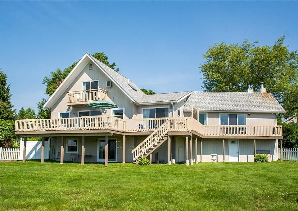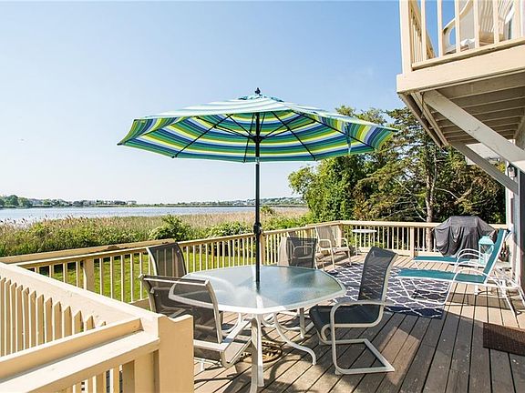 Bonnet Shores waterfront. This 4 bedroom/3bath contemporary with a master on the first floor offers 2908 sq/ft of living area over 3 floors with a private dock on Wesquage Pond and minutes to private Bonnet Shores Beach. Water views from almost every room, floor to ceiling stone fireplace, large wrap around deck, wide plank yellow oak floors, newer roof, windows, oil tank and burner. Lower level has sliders to back yard and includes it's own kitchen, full bath and laundry area. Beautiful landscaping with mature plantings, perennial flowers and circular gravel driveway.