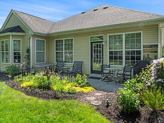 Welcome to the Encore's newest home for sale! This highly desirable 55+ community is offering this ranch style home which boast gleaming hardwood floors, 2-story foyer, high ceilings throughout. BRAND NEW HVAC BEING INSTALLED. 2 bed, 2 full bath, & an office! The formal living/dining combo leads into the gourmet kitchen with granite counters, 42 in. cherry wood cabinets, tile backsplash, pantry & a 2-sided gas FP enjoyed from both the kitchen & family room. The family room has a door that leads to the back private patio for your enjoyment. Plenty of storage & closet space with a BONUS - EASY access stairs located in the garage that leads to a large attic storage! 2 car garage with plenty of driveway space for parking. Maintanence fee includes Clubhouse with indoor & outdoor pools, fitness center, Bocci, tennis, shuffle,& pickle ball courts. Lawn maintenance, snow removal, garbage collection, sprinkler irrigation, water & sewer. Fee Simple Condo Assoc. so owner maintains both inside & outside of their home.
