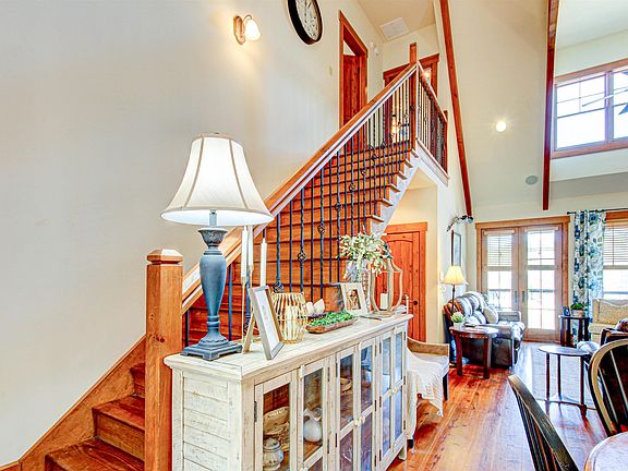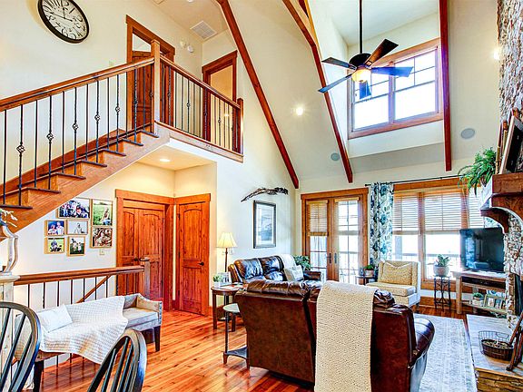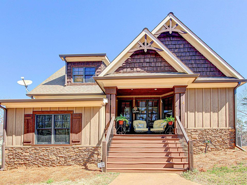 Gorgeous Craftsman Lake access waterfront home with adjoining lot and pavillion combine the convenience of downtown with laid back life style of the lake living! 5 bedrooms, 4 full baths, with the master suite and guest suite on the main level. Beautiful 18 foot ceilings in the great room with stunning rock fireplace is the focal point as you enter. The open concept design opens to a screened porch with gas fireplace and Trex flooring. Beautiful pine flooring throughout the home.. The open concept kitchen has gas stove, granite countertops and stainless appliances. The spacious master suite on main level has custom feature wall and private bath. An additional guest suite on main level. Upper level has 2 guest bedrooms and bath. Terrace level has large living area with wet bar, additional bedroom and bath with stained concrete flooring. Deeded boat slip and lot directly in front of home. Quiet neighborhood convenient to shopping and dining. Paved street. Ideal for VRBO!