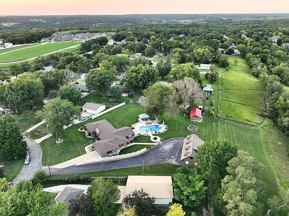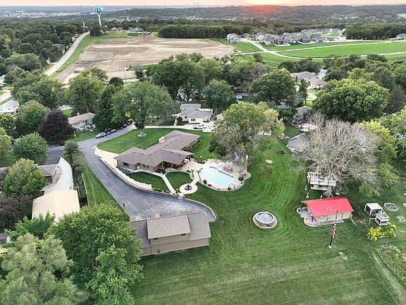 Entertainers' paradise with this backyard oasis! This home sitting on 5.44 acres (2 parcels) features and open floor plan, 3 beds, 3 1/2 baths (not including the 2 half bathrooms and outdoor shower in the pool house) a custom kitchen with GE Cafe appliances, 2 living rooms and an oversized 2 car garage with heated floors. If you need more garage space, there is a 26 X 60 detached garage with a heated shop and an unfinished 2nd floor. The backyard has a large, covered patio with stamped concrete floors, gas fire pit, and an outdoor serving kitchen that overlooks the inground heated saltwater pool. There is a 2nd fire pit in front of the tiki hut where you can enjoy the views that include a computerized dancing water fountain. You can get a bird's eye view of all of this in the adult sized tree house. Great location in Lewis Central school district and county taxes.