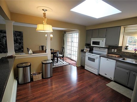 Immaculate 3 Bedroom 2 Bath Split Level with Wooded Lot. You will Love the Open Floor Plan with Updated Kitchen, Dining Room with Slider to Deck, and Living Room with Bay Window. Spacious Family Room with French Doors and Fireplace has a Sliding Glass Door to Gorgeous Patio with Built In Firepit, Pool and Deck. This House has it all..Updated Baths, Newer Boiler, Partially Finished Basement, One Year Home Warranty & More!!!