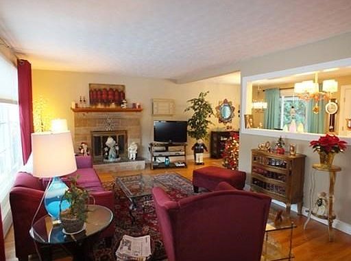 NOTHING TO DO BUT MOVE IN!!! Open concept ranch style home located on just shy of two acres of land. Walk into and notice that the hardwood floors have all been refinished throughout the home, living room with fireplace, kitchen updated 1 year and what a kitchen this is; complete with granite counter tops, hardwood floors and stainless steel appliances. Four bedrooms and a full bath with the opportunity to convert the master bedroom to add an en suite. Finished basement is the perfect man cave with built in bar. Large meticulous storage area with work benches remaining and huge closet which could easily become a cedar closet. Attached two car garage and the perfect covered patio to enjoy mother nature. Newer windows and furnace 3 years ago. Insulation added with MA save. New interior doors and woodwork in hall.