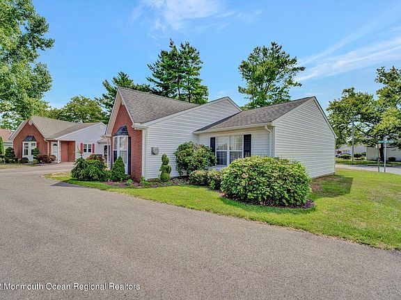 This home is located in the sought after Surrey Downs community, a 55+ community, centrally located in Monmouth County. The home is move-in ready! It features vaulted ceilings, laminate floors, gas fireplace, 2 bedrooms, 2 update bathrooms, eat-in kitchen, living, dining and den/ bonus room, laundry room and garage. The outside area has mature landscape for easy maintenance, back yard patio and parking for two. The community has all the things you are looking for in an active retirement community with a pool, clubhouse, tennis courts and plenty of daily activities to keep you entertained. Don't miss this one, all of this centrally located near shopping and transportation.