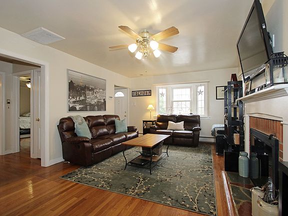 Looking for charm and a great location? Come see this lovely 2 bedroom ranch with a one car attached garage. This home features hardwood floors, new bathroom, wood burning fireplace and central air. Lovely gardens and yard with a fire pit. Complete appliance package which includes washer, dryer and new refrigerator. Baseboard heating updated this year. Conveniently located near train, parkway, shopping & more. No pets allowed.