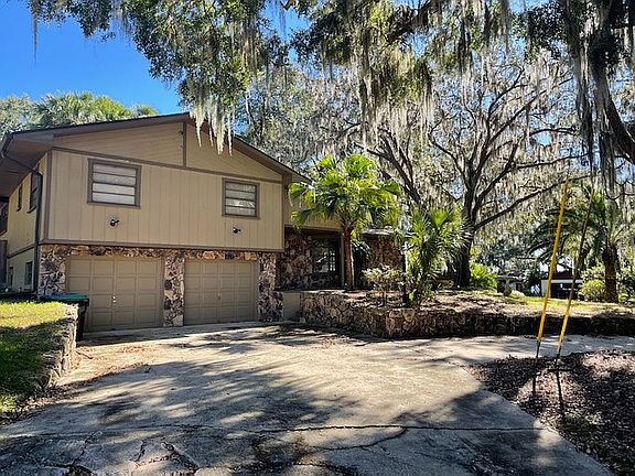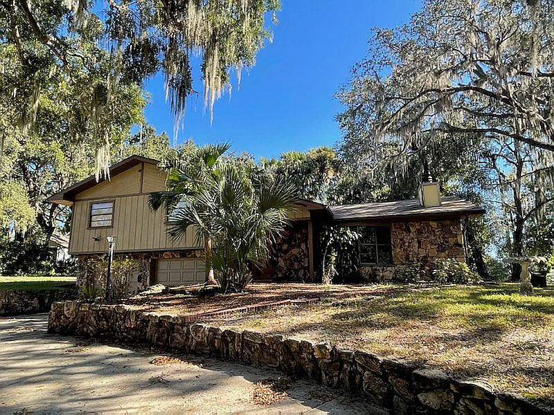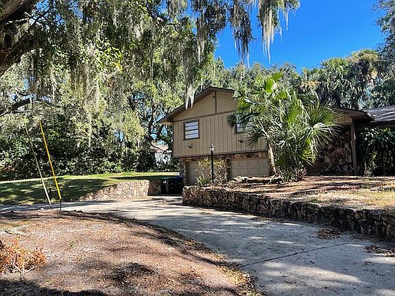 This is a unique opportunity to rent a home on an oversized lot with no HOA where you may store your large toys-RV, boats, jetskis etc. Turnpike entrance is around the corner, just minutes away. The home is located in an established community with water access to Johns Lake. Oversized corner lot with circular driveway. Majestic oak trees provide a natural canopy of shade creating a serene and picturesque settting. The split ranch design with stone exterior offers 3 Bedrooms and 2.5 baths. A tiled foyer welcomes you in and opens to the Living Room. The living room is spacious and filled with warmth and character, thanks to the stunning stone fireplace that serves as its centerpiece. The fireplace spans from the floor to the ceiling, boasting a majestic facade of carefully arranged, natural stone. Combined Kitchen and Dining Room. Kitchen is spacious with ample cabinet and counter space and has updated granite Counters. The kitchen and Dining Room open to Large Florida Room. Three bedrooms are located up a small flight of stairs. All baths have been updated and improved. The Garage is oversized and their is an additional room adjacent to the garage that could have multiple uses - office, play area, or storage. This property is fenced and includes a storage shed. 2023-07-24