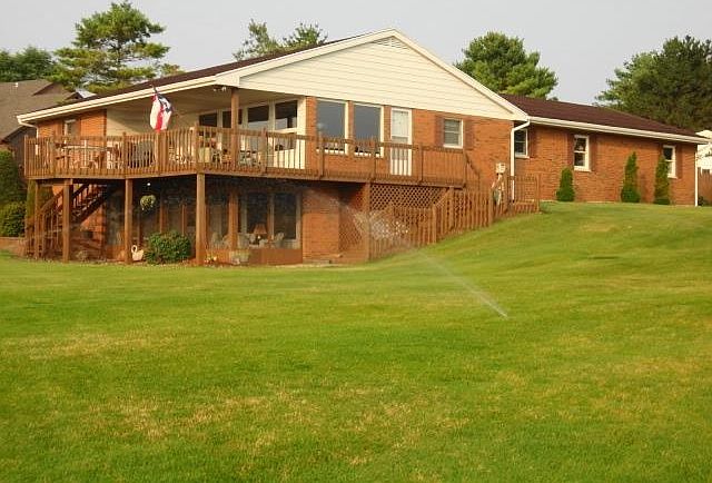 256' of water frontage on Jimmerson Lake with killer views! 3 bedroom, 3 bath home with finished walkout basement. The kitchen has ceramic tile floors and opens up to the huge living room with wood burning stone fireplace and gorgeous views across Jimmerson Lake. There's nearly 300' of deck to enjoy these views from also. The basement has a large family room with a bar and another wood burning stone fireplace. One bedroom and full bath are also here. Off the walkout is a 24x8 screened, covered patio to stay out of the weather and bugs. There's an oversized, attached 2 car garage and a detached 24x36 garage for all the storage you'll need. This home sets on a large (.85A) lot with 135' of lake frontage and 121' of channel frontage. The in ground sprinklers and nice landscaping make for a beautiful yard. Part of the frontage is a wetland area that has gorgeous wildflowers blooming most of the summer. Come check it out.