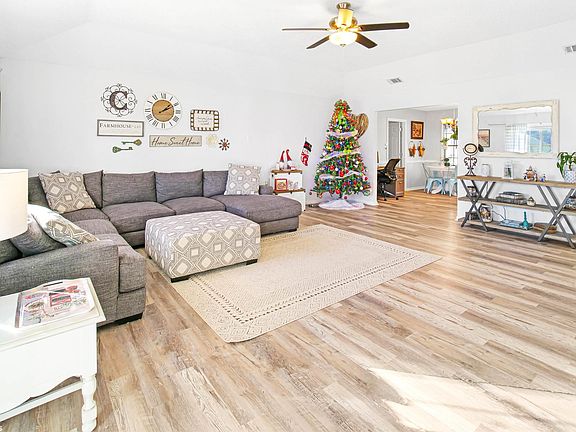 Convenient Foley location! Minutes from Foley schools, downtown, and just a short drive to the white sand beaches. This home is in a low-density neighborhood and has so much charm. The welcoming feeling begins as soon as you walk through the front door. Spacious living area with tray ceilings, beautiful new luxury vinyl plank flooring throughout main living areas and kitchen, and the interior has been recently painted. The open kitchen is equipped with an island, plenty of cabinet space, and a breakfast area. The backyard setting is peaceful and private and is the perfect spot to escape from a busy day. You can relax on the screened in porch or make your way down the paver walkway to the brand new 15x26 above ground swimming pool with a large deck that was just built. The attached double garage offers an extra room for storage, but there is also a detached workshop that is ideal to store your lawn equipment, pool toys, or tools.