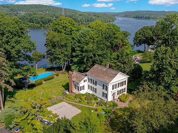 Live where the river slows down and life follows. At 55 Main Street, you can cast a line from your dock at sunrise, take your boat out by noon, and grill & dine on patio overlooking pool by sunset-all from the comfort of your own historic retreat. Set high on the East Bank of the Connecticut River, this circa 1850 home blends Federal and early Greek Revival architecture with modern updates and riverfront living. This property showcases dock access, a 20x40 gunite pool, and sweeping views of the Connecticut and Salmon Rivers. Inside, wide-board pine floors, warm antique gas entry fixture, original millwork, and 4 fireplaces honor the home's heritage, while radiant heat flooring, central air, and a walkout basement with laundry bring 21st-century ease. The kitchen opens to a river-view addition with floor-to-ceiling windows and built-in teak seating/storage. 1st floor also includes family room with picture window overlooking the river and formal dining room with fire place for holiday celebrations. Upstairs, three bedrooms are joined by a large custom closet room and two full baths. A floating stair leads to a private office with river views and door in the floor brings you to the basement. Outside, enjoy meticulously landscaped grounds, irrigation, ample parking for visitors. This is not just a historic home-it's a lifestyle, cared for by precision-minded stewards. It's a rare and refined escape, 2.5 hrs from NYC. Your year round or weekend riverside escape awaits! 2 contracted marina slips are available with this gem.