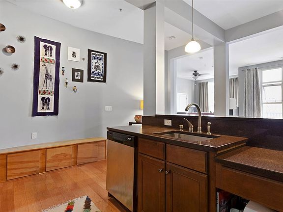Gorgeous, luxury loft style unit with high ceilings, natural light and private balcony! As you step into you new home, you will be welcomed by a gorgeous gourmet kitchen with stainless steel appliances and granite countertops. An open dining area perfect for entertaining all of your guests and large enough to house a work station for working from home situations. Gleaming hard wood floors throughout the unit. Washer/dryer conveniently located in a large walk in closet to house all of your wardrobe and storage needs. The Lofts at West Side Station is an elevator building with secured entry and is located a block from the Light Rail Station. Easy access to retail stores, parks and supermarkets. Tax abatement until 2027.