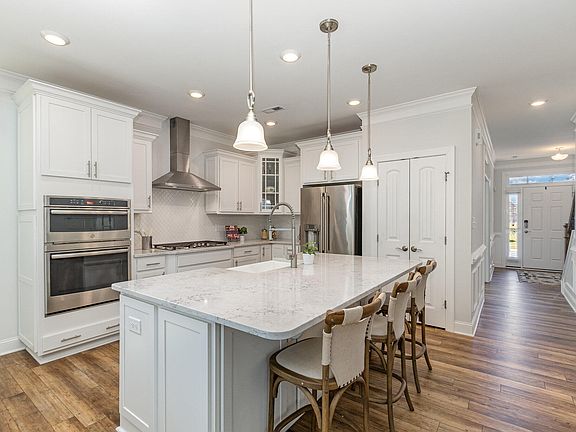 Prepare to be captivated by the epitome of modern luxury living in this impeccably upgraded residence nestled in the growing community of Franklinton. Exuding sophistication and style at every turn, this home boasts a wealth of premium features and finishes, ensuring a lifestyle of unparalleled comfort and refinement. Step inside to discover a world of elegance, where every detail has been thoughtfully curated to perfection. The main level welcomes you with the allure of stunning Luxury Vinyl Plank flooring that sets the tone for the remarkable craftsmanship that awaits. Entertain with ease in the Chef's kitchen, where culinary aspirations come to life amidst sleek Quartz Counters, an oversized island, and top-of-the-line appliances, including a wall oven combo and a natural gas range with a hood. An apron sink and tiled backsplash add a touch of charm, while ample cabinetry ensures both style and functionality. Embrace the convenience of a first-floor Guest Bedroom, complete with an attached full bath, offering comfort and privacy. Work from home in the designated office space, adorned with French Doors, a Coffered Ceiling, and an abundance of natural light, creating an inspiring environment for productivity. Indulge in the serenity of the expansive Primary Suite, where Tray Ceilings and designer touches create a tranquil retreat. Luxuriate in the spa-like ambiance of the ensuite bath, featuring a tiled shower and a true soaking tub, offering the ultimate relaxation experience. Unwind in style outdoors on your private balcony or screened porch perfect for enjoying tranquil moments or hosting gatherings. Located in this POOL community just a short drive from Wake Forest and Capital Blvd, this home offers the perfect blend of suburban tranquility and urban convenience.