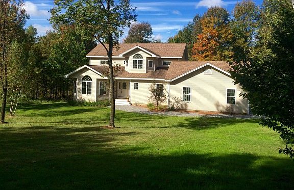 Beautifully maintained custom built home in 2003 on nearly 3 acres. This spacious contemporary colonial has 2,750 sq ft above ground. Eat in kitchen has an area for a breakfast nook and adjacent family room. There is also a formal dining room to host your dinner parties and a formal living room. The first floor has a separate washer/dryer room and a mudroom off the garage. Generous master suite features its own bathroom with a Jacuzzi tub and a walk-in closet. Additional features include gleaming hardwood, tiled floors, vaulted ceilings, a partially finished basement, wired for a generator, and plumbed for central vac. Wonderful outdoor features perfect for summertime enjoyment including a large yard, wooded back lot, wildlife, and trails nearby. Primary 2 car garage that can be used for traditional use, while the secondary 2 car tandem garage below is a great workshop or storage area. Both garages are heated. Only a few minutes to town and 10 minutes to the Interstate.