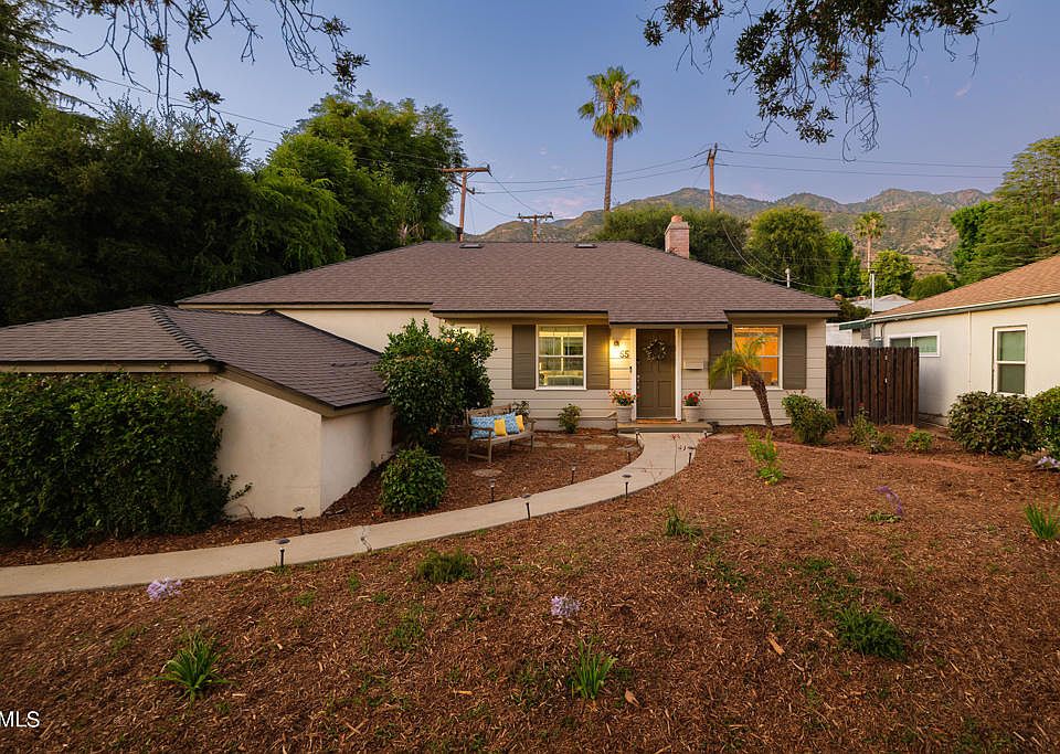 This beautiful three bedroom, one bath traditional sits at the base of our majestic foothills on a very desirable street. You enter the charming residence via the welcoming living room, with custom built-ins and a decorative fireplace, that is bookended by windows which stream in an abundance of light. In addition, there is a sitting area, an inviting formal dining room, as well as an updated kitchen with stainless steel appliances, a quaint breakfast area and a separate laundry room with pantry. Numerous highlights include wood floors, an elegantly remodeled, spa-like bathroom, ample closet place plus an oversized, attached garage. The interior opens out to an expansive covered patio and also a private fenced yard that offers sweeping views of the regal San Gabriel Mountains rising in the distance. The property showcases idyllic curb appeal, sitting up on a raised knoll, and is landscaped with a variety of California native plantings. This is truly a wonderful place to call home.