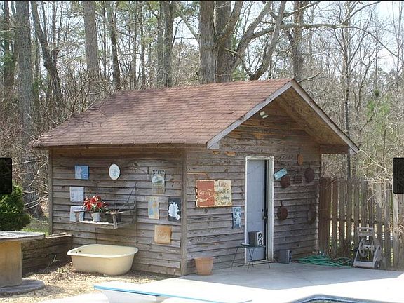 4 bedroom, 3 bath, wrap-around porches, in-ground pool and pool house, concrete patio area, two outbuildings, separate efficiency apartment, large 3-bay shop with two offices and bath. Central heating and air needs updating.