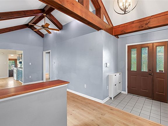 Brand new floors throughout the first floor compliment an open floor plan with vaulted ceilings. Arcitectural beams frame the vaulated ceiling throughout the main living space. Fully fenced in back yard and walk out basement complete this gem of a property. Conviently located to the center of Forest Hills.