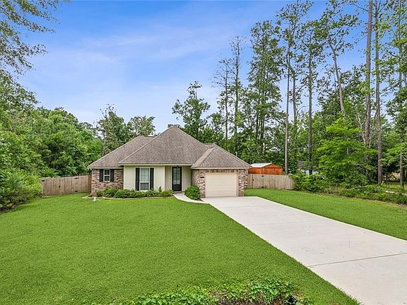 Best flood zone X! Beautiful, modern low maintenance brick & vinyl home on spacious 100x176' fully fenced lot close by Hwy. 22 & 1085. Screened porch overlooks absolutely wonderful back yard! 10' ceilings in Primary bedroom, 9' all others. Beautiful & durable vinyl wood plank flooring, tile in kitchen, breakfast, foyer, laundry; brand new carpet in extra room (great for office, den, etc.). HUGE primary bedroom closet! Need car storage? Garage mechanics are stored in the attic should you prefer to convert space back from extra room off kitchen. Open concept floorplan with beautiful kitchen featuring granite counter tops, laundry room with storage cabinets, water filter system, security system. Access to interstate, dining, shopping. Excellent school district! Madisonville Elementary, Lancaster Middle, Madisonville Jr. High, Mandeville High. Currently all electric home with Natural gas line reportedly buried front corner of property. Inquire w/ City of Madisonville if interested in running natural gas line to home. *******There is a LOAD TRANSFER SWITCH INSTALLED THAT STAYS WITH THE PROPERTY ALLOWING THE USE OF A GASOLINE GENERATOR. ********************************************************************************************************