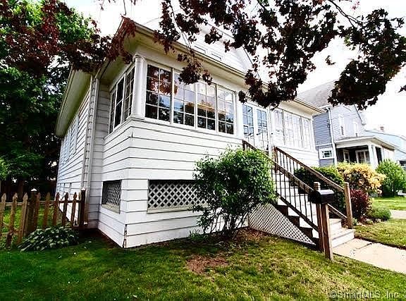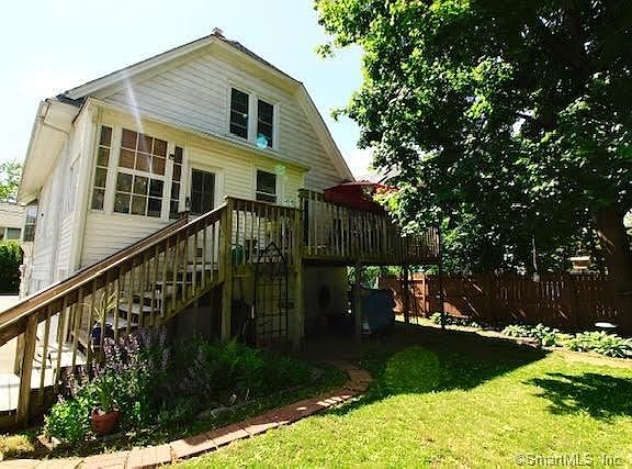 You'll feel at home the moment you arrive at this charming Old Colonial style home. The 1st thing you'll notice as you arrive is a beautiful & roomy covered front porch facing the street. Around back you'll find a comfortable deck overlooking the fenced-in backyard with mature trees & gardens. The oversized living room & formal dining room both provide ample room for the family or when you're entertaining. There's also a 1st floor room w/ a closet which has a slider leading to the deck area that could be used as an office, TV room or guest bedroom. The updated kitchen has plenty of room for a breakfast table and to add shelves, etc. Upstairs you'll find 2 bedrooms that share a full bath and a nice sized spot that would work well as a homework/play area. There is ample space to store your things in the basement or large crawl spaces in both upstairs bedrooms. Most recent updates done by the seller include new solar panel system (transferable lease $36.11/month to qualified buyer), newer roof, H2O heater and insulated vinyl windows AND a new furnace is scheduled to be installed ASAP. Quick walk or bike trip to Old Wethersfield & all it offers and convenient to amenities and highways yet set in a quiet residential neighborhood.