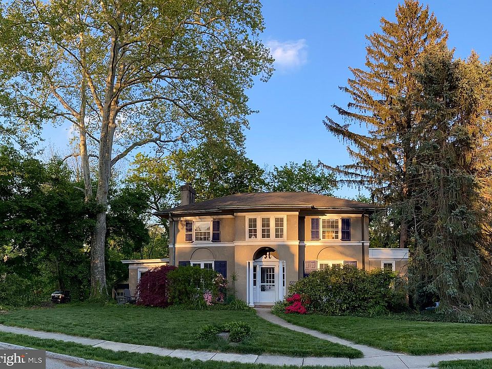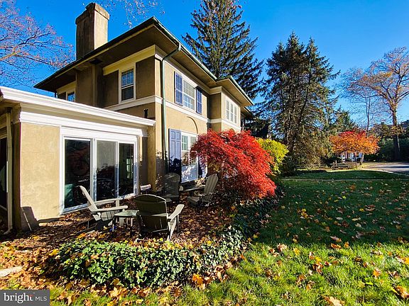 Starting with the striking curb appeal, you'll fall in love with this home. You'll be greeted at the foyer leading to the timeless, detailed staircase. The stately Living Room to your left is marked by a fireplace, adding symmetry to the room and its double French doors on each side. A wall of bookcases with open and closed cabinetry displays photos and memorabilia. The French doors open to an all-glass enclosed room open on three sides. Adjacent to the room is rear patio space and an outdoor seating area. To the right of the foyer is the over-sized Dining/Family Room, naturally lit by skylights and large windows. The Kitchen , with open shelving and under-counter lighting, opens to the Dining Room with counter seating. A door from the kitchen leads to a large deck. To the rear of the first floor is an office, providing a cozy, quiet place to work. A Powder Room sits to the rear of the home. On he 2nd floor is the 14'x29' primary large Bedroom with built-in cabinetry housing clothing , TV, two more closets, and a built-in platform bed. A full bath adjoins the Main Bedroom. with a tub/shower and vanity. The 2nd bedroom measures12 x13, the 3rd bedroom 12 X 12, and 3rd bedroom 11 X12. The partially-finished basement contains a large recreational space as well as gym space. If you desire a work room it has that also. There is an exit to the rear of the home from the basement. The deck, accessed from the kitchen and driveway, is can accommodate outdoor table, chairs, and barbecue grille. Sunlight flows through the house. Kids play and ride bikes on this quiet neighborhood street. Neighbors walk along the sidewalks on their way to the train, schools, and Narberth. If you desire a beautiful light-filled home with character, charm, great curb appeal, and friendly neighbors this may be your home.