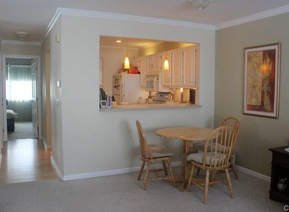 Bright & Spacious Ranch at Westwood Village. The soaring entrance has a contemporary feel as you enter this second floor ranch. Living room/dining room with fireplace, crown molding & sliders to the deck with distant views. Updated kitchen has tiled floor & recessed lighting with pass thru opening to the dining area. The large bedroom has two walk-in closets & crown molding. Neutral decor. Newer windows & slider. Bonus room in basement with washer & dryer & newer hot water heater. Can be used finished for extra space. Plenty of storage. Reserved parking spot. Two pools. Located in the Westside Dining/Entertainment area of Danbury. Great commuter location. Get to the NY train station in 7 minutes. Why Rent When You Can Own!!