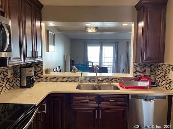 Light and bright 1 bedroom home with private entrance in sought after Westwood Village. Complete renovation including floors, interior doors, kitchen, bathroom, all lights and light switches and power outlets. Updated kitchen with stainless steel appliances, quartz countertops, and breakfast bar. New vinyl flooring throughout unit. Living room/ Dining room with wood burning fireplace and sliders out to large, private deck. Sun filled spacious bedroom with 2 walk-in closets, and window seat. Fully updated full bath with quartz countertops, tile floor and walls, and tub/shower. Full unfinished basement with washer/dryer and tons of storage. Wonderful location close to shopping, restaurants, I-84 and Rt 7. A must see!!