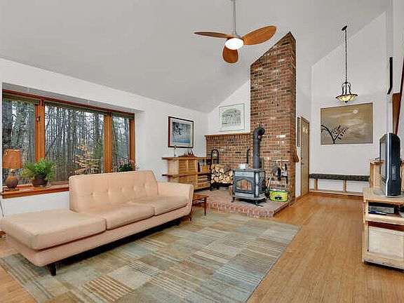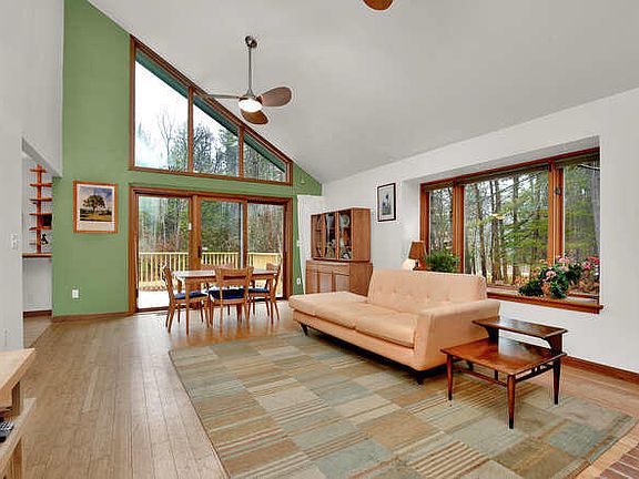Wow! This is privacy galore with passive solar. Many updates such as new deck, new lighting, newly painted inside and out, new flooring in most rooms, lots of windows such as bay window and seat window. 5 fans in ceiling, cathedral ceiling, open concept, stone patio, murphy bed built in on first floor bedroom. two car garage built in !997,electrical generator on circuit. Metal roof with 50 year warranty, daylight basement, partially finished basement.
