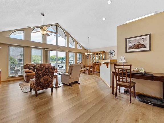 Nestled in the picturesque Wellington neighborhood, this zero entry condo boasts floor to ceiling windows with breathtaking views of the pond. This light-filled three bedroom 2.5 bath condo includes a main floor primary ensuite with a large walk-in closet. Use the second bedroom as an office or sewing room. The spacious deck has enough room to entertain guests or to enjoy dinner with a view. The walkout lower-level has plenty of room for entertaining and features a large bedroom for guests and an additional room for storage. Enjoy your coffee on the patio swing. The perfect area for leisurely walks with a warm sense of community.