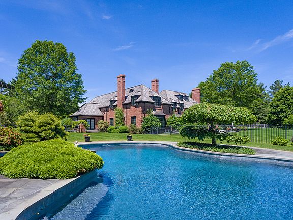 Located in the heart of Round Hill Road, this European designed home offers great sophistication and privacy. Over five acres of lush rolling emerald lawns with apple orchard, perennial gardens, wild flower garden, stone courtyard with alley of trees. Magical. Owners have meticulously maintained this estate offering beautifully scaled entertaining rooms that open to the oversized terrace and gorgeous views. Large front-to-back entry brings great natural light to all the spaces. Free form pool with fountain. Pool house. Separate apartment. The perfect oasis.