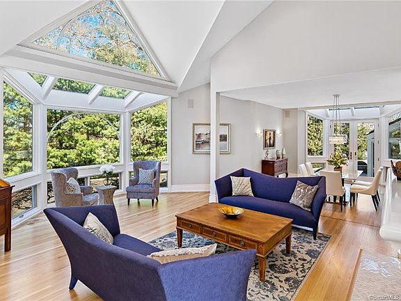 Handsomely sited on a coveted street in Greens Farms, minutes from train, beach, and shopping, this stunning home has it all. Sundrenched living spaces w/ walls of windows flow throughout: two spacious family rooms w/ FP, an open dining room & living room made for large-scale gatherings with friends and family, and a custom, gourmet kitchen w/breakfast area. 6 bedrooms include a luxe master suite, an au pair suite, and a private first floor guest suite w/access to the terrace. The finished LL boasts a 2-story atrium, game room & state of the art home gym. 4-car garage & bountiful storage indoors and out. Outside, discover a blissful, private setting & soak up the sun on four stone terraces surrounding the home. A fully equipped outdoor kitchen w/oversized grill, outdoor fireplace & swimming pool create a resort-like oasis for entertaining under the stars.