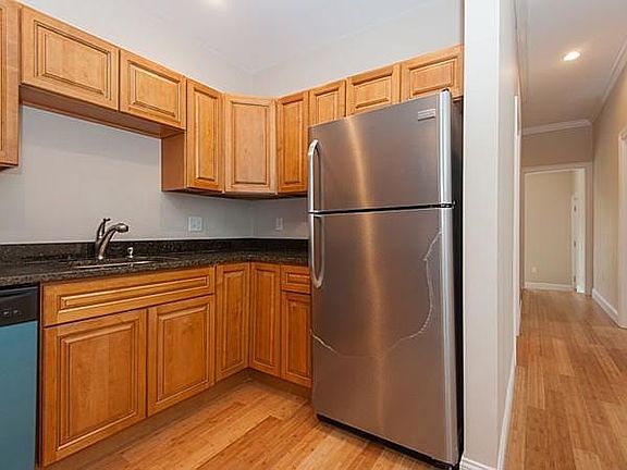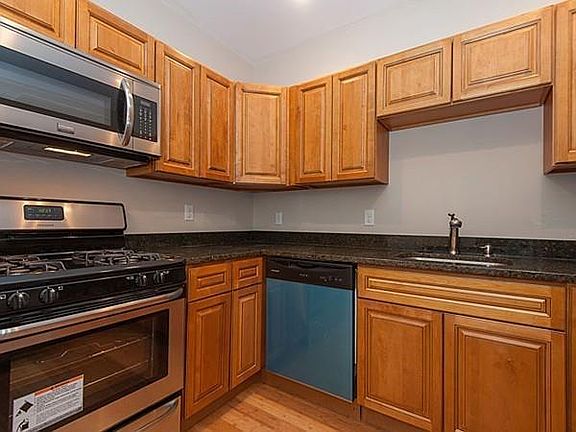 Newly renovated 2-bedroom unit with closets, bamboo hardwood floors, recess lighting throughout, ceiling fans in bedrooms, granite counter tops, central air (heat & AC), stainless steel appliances, jet tub, in unit washer & gas dryer hookup, extra storage in basement and 1 off street assigned parking space. Good credit a must with a 700 score and above.