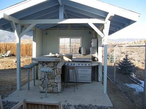 Enjoy this very peaceful home with breath taking scenery. It is not uncommon to see a wide variety of wildlife such as mule deer, hawks, rabbits, squirrels ext.. This beautiful home is located on a spacious 1.87-acre lot. There are three large bedrooms and two bathrooms. The kitchen is upgraded with granite counter tops and lovely wood cabinets. This house has a large laundry room that is off of the 3-car garage. Beautiful tile and wood floors throughout. A Large back yard equip with RV parking and storage sheds also features a outdoor kitchen, plenty of room for a garden a nice back deck a green house and room for horses, goats,sheep etc...There are many beautiful trees including some fruit bearing ones on the property. A nicely landscaping front and side yard with a lovely pergola structure to provide a shady sitting area on hot days. Walking distance to the park. . If you wanted to add on to the home there is defiantly plenty of space. This would be a great property for a horse owner or any one seeking the comforts of the country with the convince of close access to Reno or a quick Drive to California. This home also has a Filtered water system. There is a $50.00 dollar annual road association. Please come and take a look. seeing is believing:)