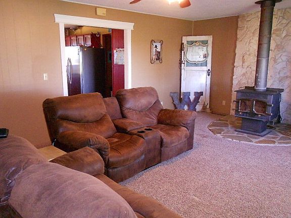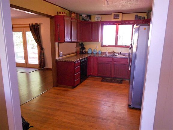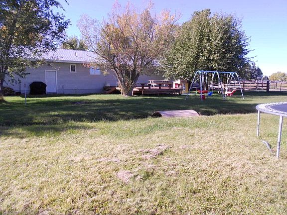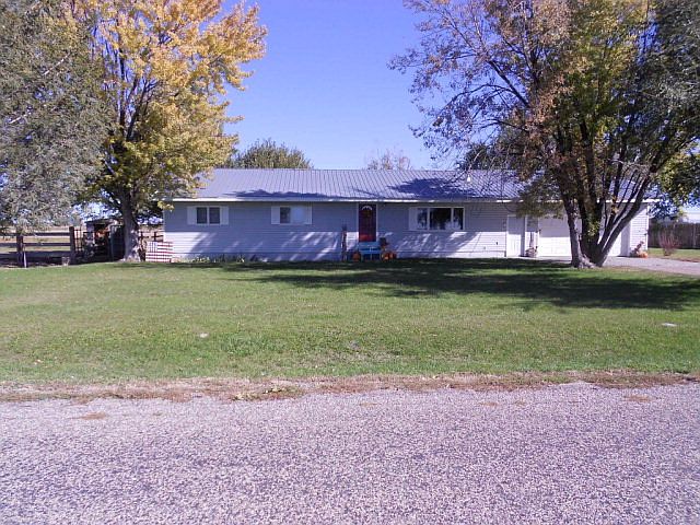 ACREAGE PROPERTY - With the maintenence free exterior, clean & appealing interior & fenced, irrigated pasture, you just hit the real estate trifecta! Roomy living flows into open & very useable kitchen with beautiful hardwood floor. Adjacent to kitchen discover the huge dining room (with newer laminate flooring) and easy exit onto a very large wood deck off the back of the home. Garage has shelves upon shelves for storage and organization. From the oversized two-car garage, you'll step into the mudroom/laundry with a 1/2 bath just to the rear. Shelf with storage and a large cabinet store a variety of necessary items. The three well-sized bedrooms lie just down the hall with 2 having walk-in closets & the third with a wall of closet space! The full bath just footsteps beyond the bedrooms and features a large vanity with fiberglass tub/shower surround. Newer carpeting throughout. living & bedrooms. Wood stove in living area creates a warm and inviting place for relaxing at the end of a busy day. Metal roof & vinyl siding make exterior care free. The pasture is large with 2 corrals and an open livestock shed about 16' X 25' with lights. Room to park vehicles & trailers by livestock corral and off the roadway. Mature trees & yard. Place this on your 'MUST SEE' list today.