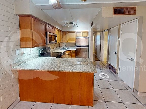 ** $300 CREDITED TOWARD MOVE IN COSTS! ** 546 SQ. FT. Charming 1 bedroom, 1 bathroom end unit in a beautiful condo complex. Neutral interior with tile flooring in all the right places. Great room and charming kitchen with breakfast bar. Full bedroom and bathroom with large closet. Blinds and ceiling fans. Washer/dryer included. Covered parking space. Just 4 blocks from the University of Arizona. Beautiful courtyard with swimming pool and BBQ ramada. **Water/Sewer/Trash all included with the complex.** APPLICATION: $55 Application Fee Per Applicant 18 years or older (Nonrefundable). Please allow 24 to 72 business hours to process the Application once all required documents are submitted by all applicants 18 years or older. LEASE LENGTH: 12-month Minimum (Longer Lease Term may be negotiable) INITIAL MOVE-IN COSTS: Upon application approval, a nonrefundable Holding Retainer will be required to secure the property and will be applied towards the move-in costs. The Holding Retainer amount is determined by the type of Security Deposit option you choose. Applicants can choose between a traditional Security Deposit which may be 1 times the monthly rent but not greater than 1.5 times the monthly rent (75% refundable) or a Security Deposit Alternative program (only available on long-term leases of 12 months or more). A $250 one-time lease preparation fee as well as the first month's rent is due prior to move-in. Pet Policy: Dogs and Cats Allowed If the Applicant has a Pet, $150 Non-Refundable Pet Fee per pet. RECURRING MONTHLY COSTS: There is a 2.9% Rental Tax/Administration Fee. (AZ Dept of Revenue Transaction Privilege Tax ends December 31, 2024) If the Applicant has a Pet, a $35 Pet Rent Per Pet (Does Not Apply to Assistive Animals). All On Q Property Management Residents are enrolled in the Resident Benefits Package for $39 or $49 with pets, which includes liability insurance, credit building to help boost the resident's credit score with timely rent payments, move-in concierge service making utility connection and home service setup a breeze during your move-in, Renter to Buyer program, and much more! *Other terms and conditions may apply. All information including advertised rent and other charges are deemed reliable but not guaranteed and is subject to change.