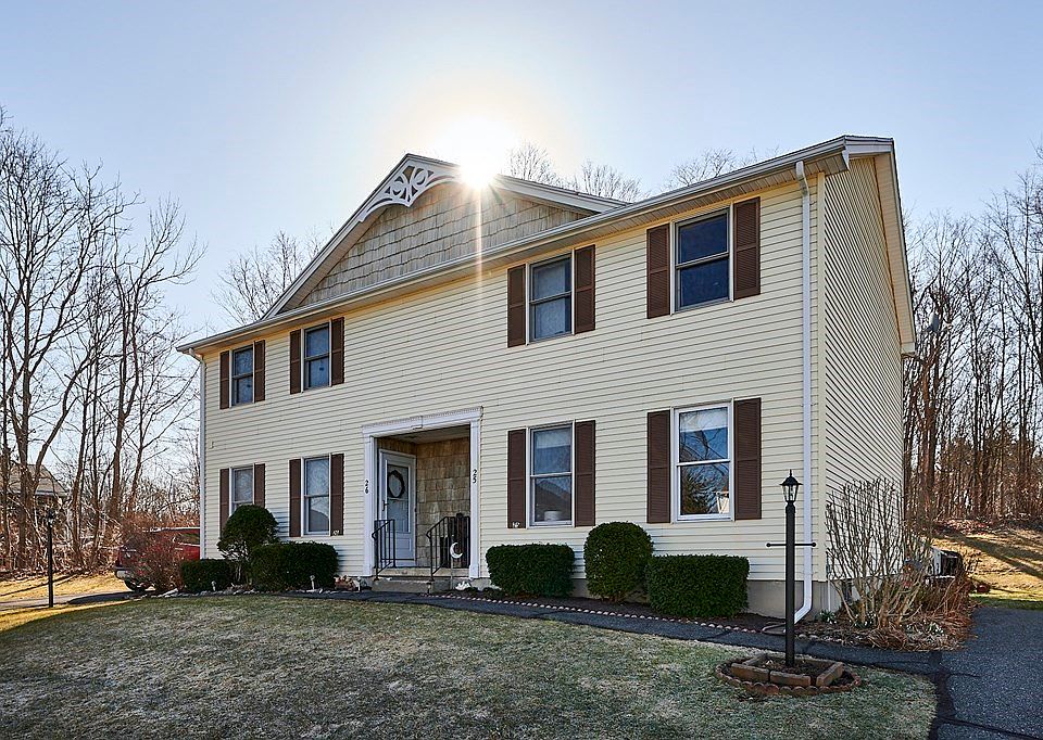 HIGHEST & BEST DUE MONDAY, 4/3 AT 2:00. Welcome Home to this Lovely, Light and Bright Townhouse! Thoughtfully updated 3 bedroom, 1.5 bath condo, right in the center of Belchertown. Quiet complex bordering the woods, walk to the town common, post office & restaurants! Open floor plan; kitchen features granite countertops and stainless appliances, including a brand new stove. The adjacent Dining room has a sliding door to the south facing back deck and flows into the generous Living room with oversized windows. Hardwood, bamboo, tile & marmoleum flooring, low VOC paint and tasteful lighting fixtures throughout. Spacious Primary bedroom with reading nook, sconces and walk-in closet. Two more bedrooms and a full bath complete the 2nd floor. The Basement is partially finished with a delightful playroom (or office area). Laundry and storage add to the living space! Pets are welcome with board approval. Come See