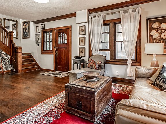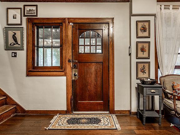Quintessential Irvington abode on tree lined historic street. Complete with custom kitchen cabinetry, butcher block countertops, ceramic backsplash, farm sink, brass hardware and faucet, the cook can enjoy views of the freshly stamped concrete patio and fire pit through the new french doors to the fully fenced backyard. Don't miss the sweet half bath with wainscoting details! Handsome engineered hardwoods on the main are complemented by original refinished hardwoods on the upper, plus a newly tiled shower in the primary bathroom (which includes a clawfoot tub). New windows in primary and kitchen installed in May 2024, new water heater installed December 2023. New paint and wallpaper throughout, and a delightful covered front patio just perfect for those transitional seasons. The list goes on, and all walkable to the best of Irvington. Come see!