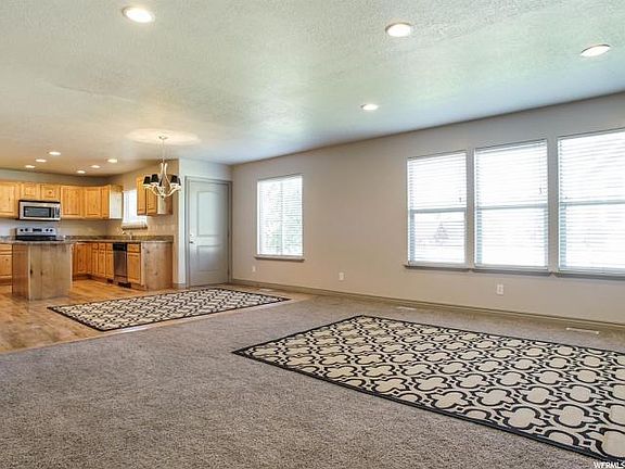 Nice looking home, and neatly landscaped for great curb appeal and inviting entry with fountain by the front porch! Looks more like a rambler, and with the ideal floorplan of having the master suite (and a guest or baby's bedroom) on the main level, and the extra bedrooms upstairs. 13 ft entry has a double door access to a den or formal living room. Greatroom layout has large family room (portable cherrywood gas fireplace is currently downstairs). Sharp-looking updated kitchen with can lighting, island bar with cabinets, new stainless steel appliances, granite counters, and large pantry. Gorgeous hardwood floors, all just refinished! Maple cabinets. Travertine floors. New paint. Huge master suite w/ walk-in closet, tile shower, separate jetted tub, and dual sink vanity with granite countertops. Spacious laundry room. Extra bedrooms upstairs, and a bonus room. Closets adjoin (kids will love it!), and bathroom upstairs has vanity separated from bath. Oversized L-shaped garage (3rd stall tandem), with ample room for toys and tools, and RV pad on side of house, protected by a gate. Storage closets upstairs, and cold storage down. Lots of room to expand in basement and build equity. Nice wide backyard, patio, and vinyl privacy fence. On top of everything else there’s owned solar resulting in minimal to no electric bill! Great community, and the future West Davis Corridor will be nearby, making commuting south more convenient.