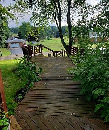 Brick ranch on over a half acre lot in Utica. Over 1500 Sq. Ft., 3 bedrooms, 2 baths, 2 car garage. Hardwood floors, tongue and groove wood walls and gas log fireplace. Exterior features mature trees, multi-level deck and rear patio with hot tub.