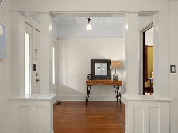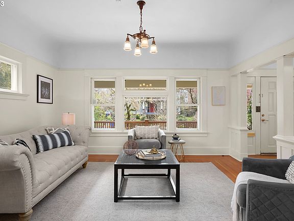 Classic Old Portland home with incredible trim detail, hardwood floors throughout, high ceilings and the benefits of an updated kitchen. Cozy entry into traditional living room and dining room with SO MUCH light! Chair rail with coved ceilings and transoms over each door with stunning original hardware. Newer lighting with old world style modernizes this 1900s home. Bedroom on the main could be office, as it has gorgeous built-ins and a walk-in closet. Upstairs features three bedrooms, 2 with walk-in closets, and a spacious loft. Enjoy the outdoors on the classic covered front porch or the back porch! Backyard is super private with an oasis of greenery. Raised garden beds, tool shed, and delightful pergola. With a 85/100 walk score and 93/100 bike score, this home is just blocks to so many great restaurants and more. High efficiency furnace, newer plumbing/electrical. [Home Energy Score = 2. HES Report at https://rpt.greenbuildingregistry.com/hes/OR10214510]