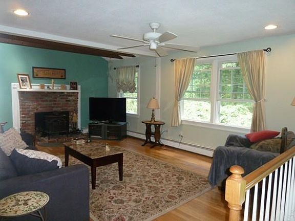 What a Great Opportunity! This bright and airy raised ranch is set back from the street nicely and has a large fenced-in backyard that can be viewed from the beautiful sprawling deck. The main level is 1144 square feet (mostly hardwood floors) of open concept space and boasts a large eat-in country kitchen that opens into a living room with vaulted and beamed ceiling and fireplace with wood stove. There are three bedrooms (all hardwood) and full bath that complete the space on the first floor. The basement space has a 12X10 study, a clean 1/2 bath that are included in the 1336 sq ft measurement. There is also a large open area with laundry that is not included in the square footage that makes for great storage or could be finished for additional living space. Title V failed however funds will be held in escrow for buyer to install approved 3 br septic system at sellers cost. First Showing at Open House Sunday 7/23 from 1-3pm.