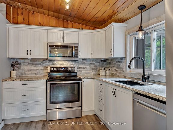 Charming 3-Bedroom Cottage/Home in the Heart of the Kawarthas. Welcome to your perfect retreat between Buckhorn and Bobcaygeon! This 3-bedroom, 1-bathroom cottage/home offers open-concept living with an updated kitchen featuring modern cupboards and sleek granite countertops. Gather around the cozy wood-burning fireplace on chilly evenings, or enjoy the sunshine in the spacious 3-season sunroom that walks out to a large, private deck--ideal for entertaining. Nestled on a generous treed lot, this property provides privacy, parking for guests and water toys, and plenty of outdoor space to enjoy. Two bunkies offer extra accommodations or storage, while the oversized shed is perfect for boats, snowmobiles, or additional storage needs. Whether you're looking for a year-round home in the countryside or a cottage getaway in the Kawarthas, this property has it all.