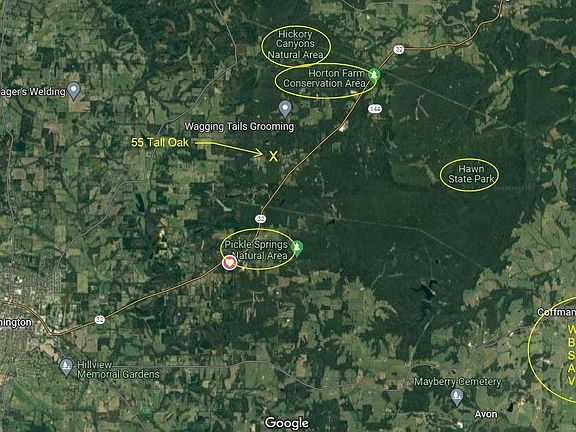 - Features: Adjoins Wooded Area, Gently Rolling, Scattered Woods, Wooded