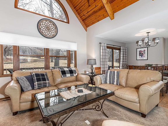 Your Perfect Escape in Oak Glen Village Nestled in the heart of The Galena Territory, yet offering a private retreat, this Oak Glen Village home is the ideal getaway. From your deck, soak in the peaceful wooded surroundings and stunning golf course views. Overlooking the 5th hole of the Eagle Ridge North Golf Course, this home is also just steps from one of The Galena Territory’s top hiking trails. Vaulted wood ceilings and exposed beams create a warm, mountain-lodge ambiance, while the upgraded granite countertops and stone accent walls add a charming rustic touch. The home features a working fireplace, a main-level primary suite, and a brand-new dryer. Recent updates include a **new AC and furnace (2021), a freshly repainted interior, and new window treatments. The home is move-in ready and comes fully furnished, including all kitchen essentials, bedding, and towels, with only a few exceptions. Don't miss this perfect blend of comfort, charm, and convenience!