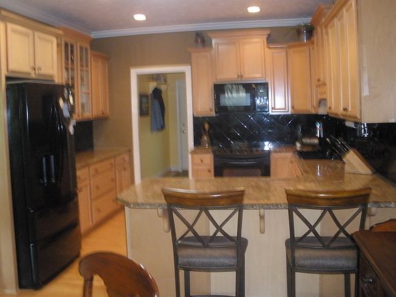 Single level red brick home within walking distance of the village and club. Home features hardwood floors throughout, 9 foot ceilings (vaulted in great room), granite counter tops as well as crown molding in the main living area along with marble encased fireplace and gas logs. Plantation blinds shade the front rooms while a retractable awning shades the rear deck. Kitchen/breakfast area has maple cabinetry with a french door refrigerator. The large master bedroom, with walk-in closet, includes a bright bath with spa tub and separate shower and commode. Second and third bedrooms are multi use at present. HVac system new in 2014. The oversized garage includes a work bench along with storage closet and cabinets. Mature, seasonal landscaping and flat rock gardens offer attractive curb appeal.