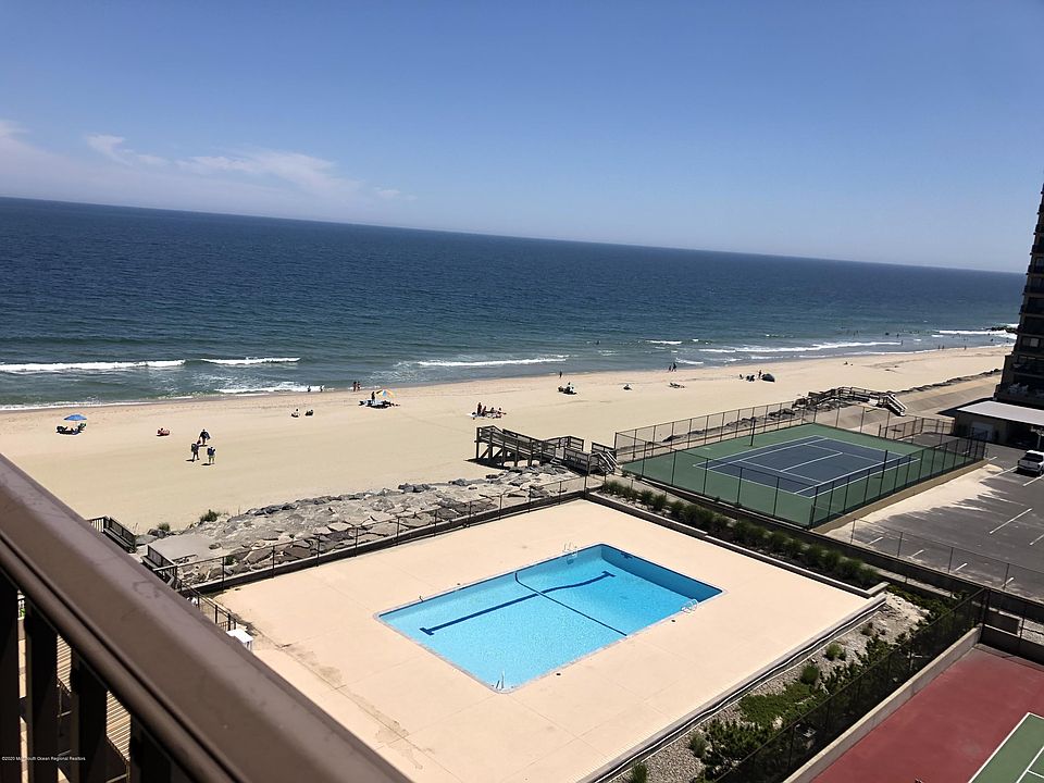 Beautiful southern Ocean views from this fully furnished 2 bedroom, 2 bathroom annual rental. No pets. Updated bathrooms, wine cooler, marble floors and much more. Complex has heated pool, beach, 24 hour concierge service, exercise room, underground parking, tennis courts, extra storage and more. View Monmouth Beach, New York and Sunsets from your private balcony.